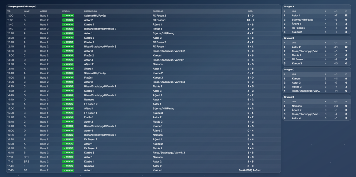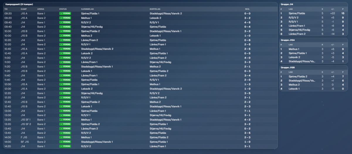 Totalt har 40 lag deltatt, og det var ca 320 ungdommer på banen totalt sett. Resultater følger under for alle klasser.