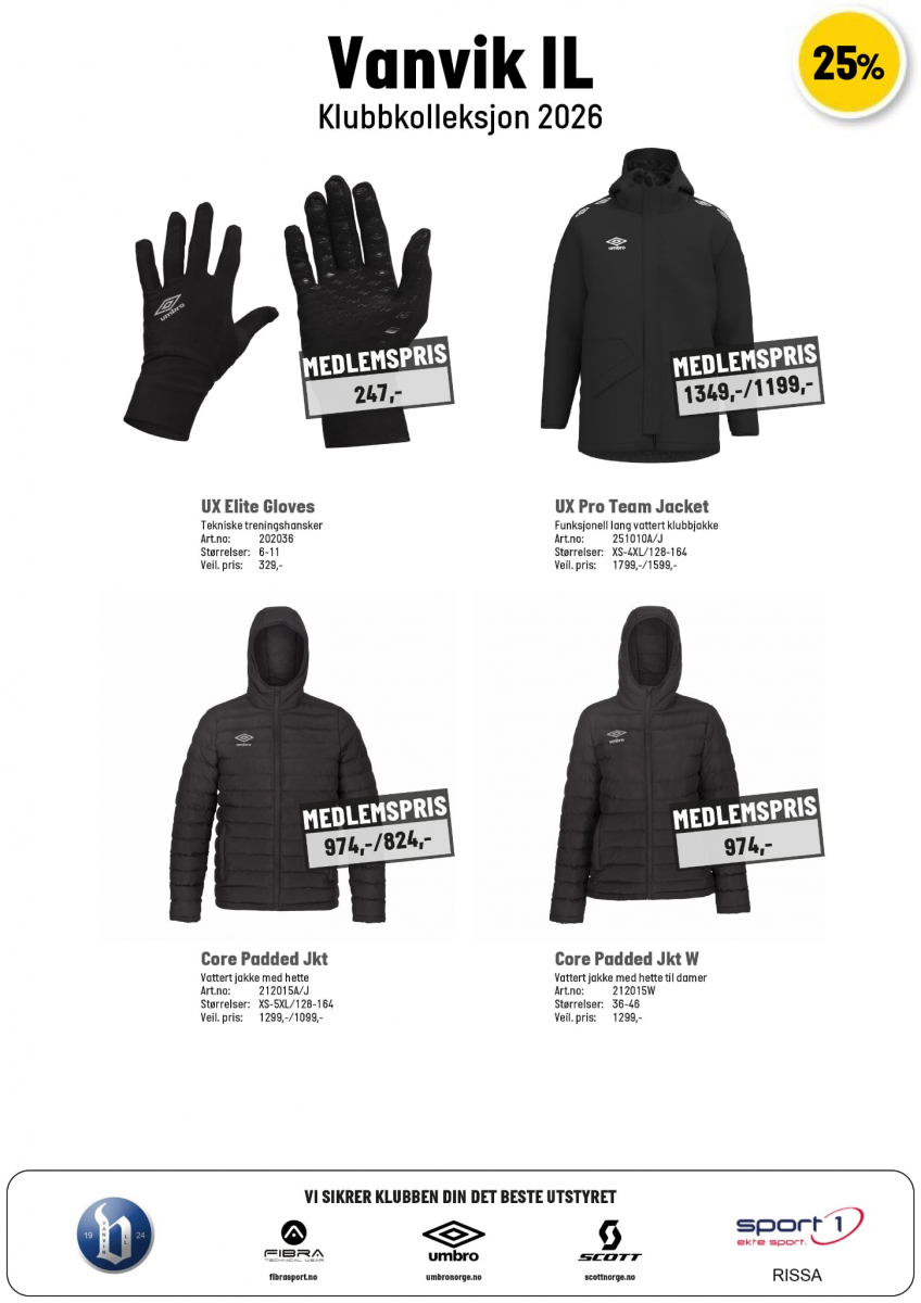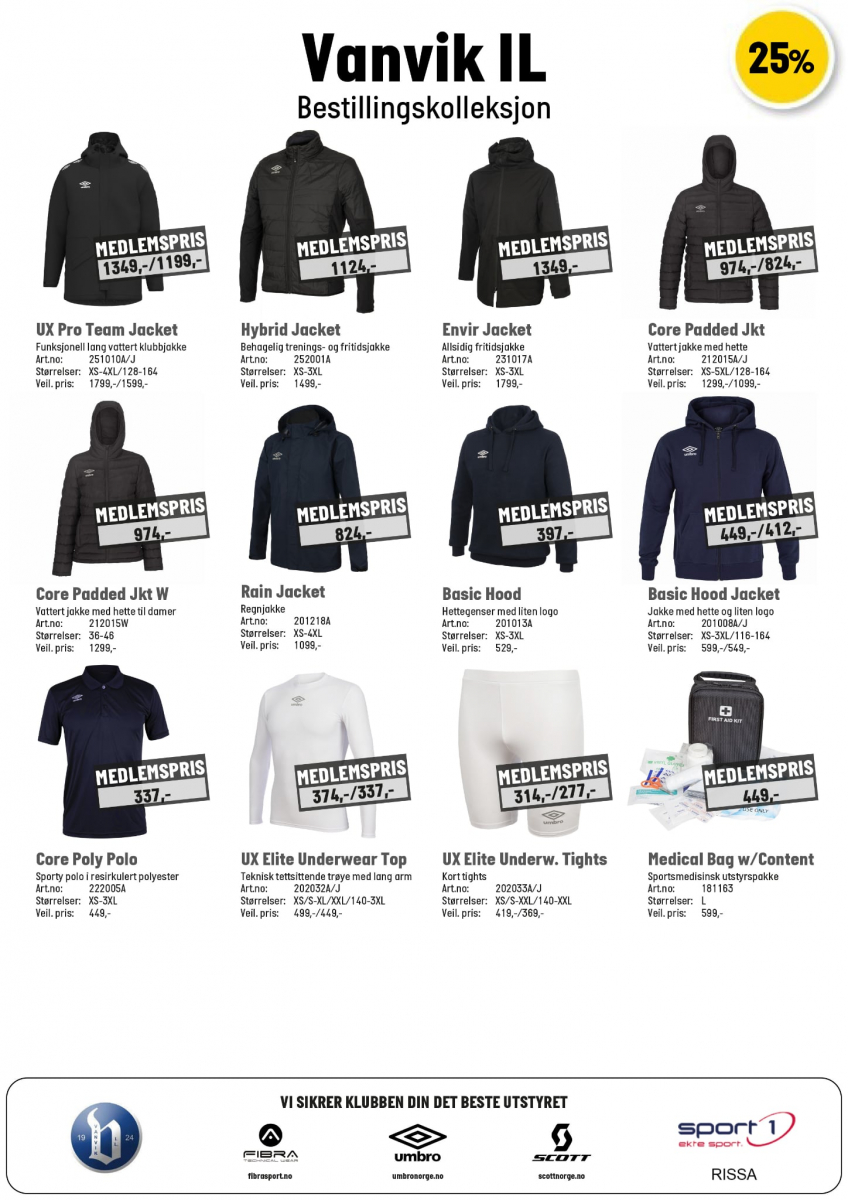 Nedenfor vises en oversikt over Vanvik IL sin klubbkolleksjon som finnes i Sport 1 – Rissa sin butikk: